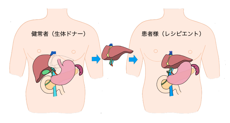(生体肝移植:健常者(生体ドナー)から肝臓の一部を切り出し移植する方法)