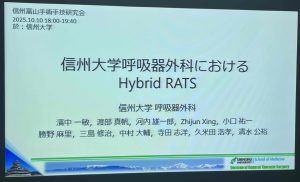 第一部では、当教室の濱中が「信州大学呼吸器外科におけるHybrid RATS」と題して発表を行い、最新の取り組みを共有いたしました。