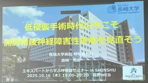 「低侵襲手術時代の今こそ開胸術後神経症障害性疼痛を見直そう」