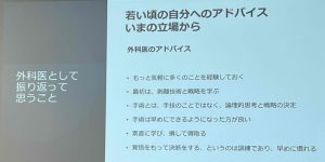 松本先生のご講演では、呼吸器外科における教育の基本を大切にしつつ、日々直面する困難症例に真摯に挑戦されている長崎大学の取り組みを知ることができ、大変刺激を受けました。若いうちから学ぶことや基本の大切さ、手術における論理的思考の重要性などに関して、松本先生ならではの視点から、我々若手医局員にも分かりやすくお話頂きました。