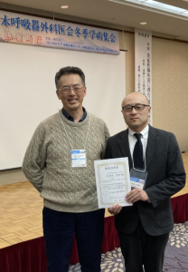 私は「解剖学的肺切除後の再手術において肺動脈・気管支の一括切離を要した1例」について発表を行い、幸いにもこの日の優秀演題賞に選出していただきました。